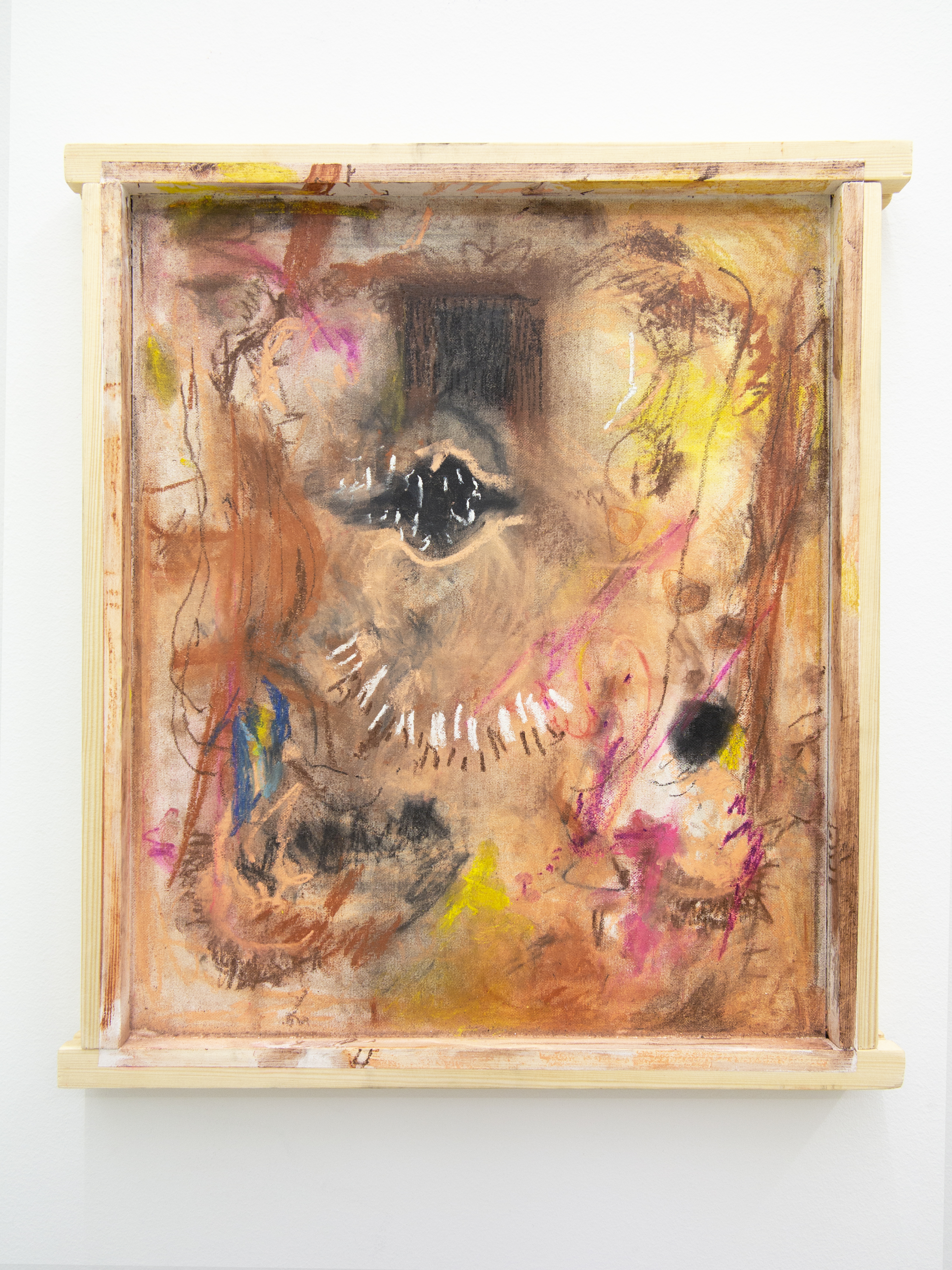 Front and back. Handmade pine wood frame, digital drawing on photograph, dry pastel and acryllic paint